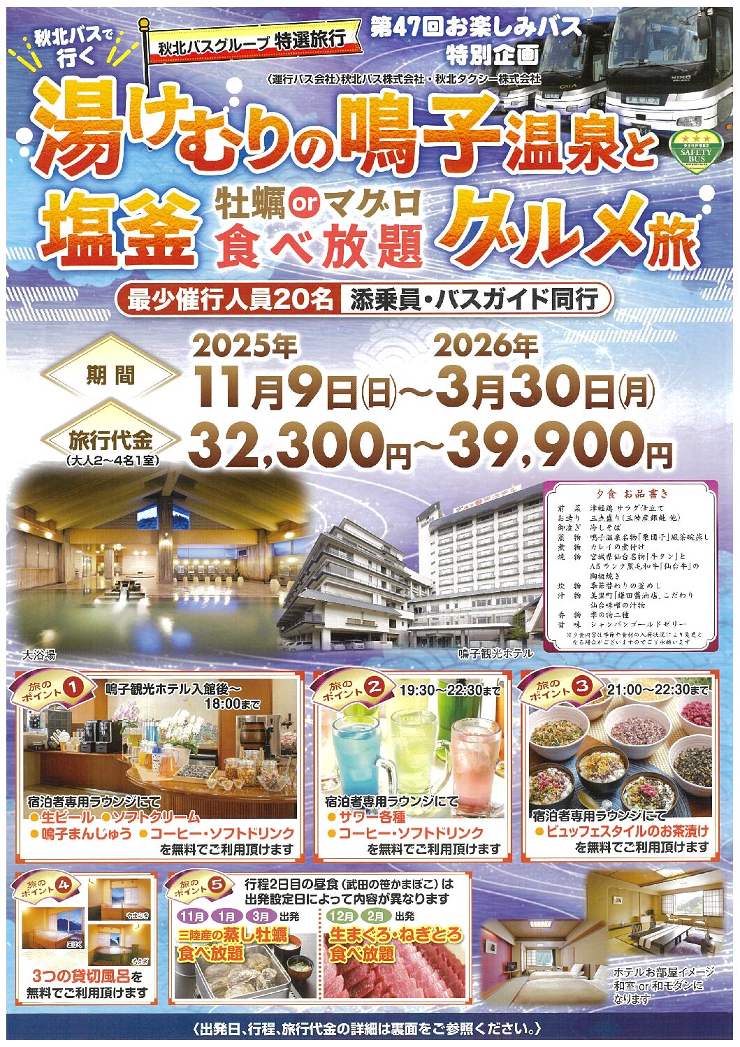 秋北バス・秋北タクシーで行く11種類のよくばり 日帰り旅行🚌